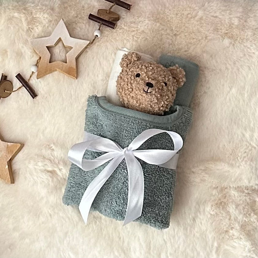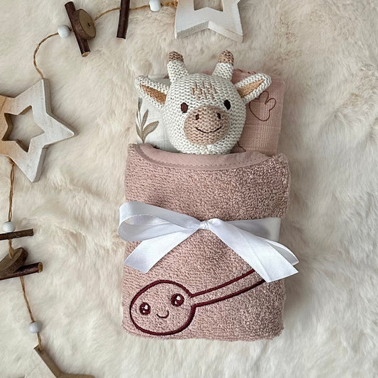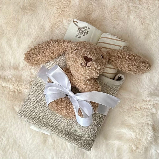 Baby Geschenk-Set mit Hasenrassel 🐰 personalisierbar