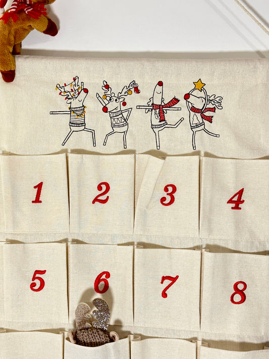 Adventskalender aus Baumwoll-Canvas bestickt mit Rentieren