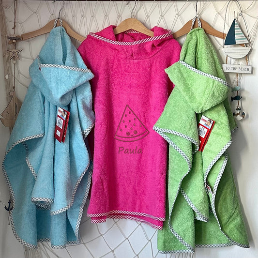 Badeponcho "Freche Früchtchen", mit Ziereinband in tollen Sommerfarben 💚🩷🩵