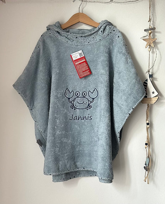 Badeponcho mit bedruckter Kapuze personalisierbar mit Stickmotiv + Wunschname