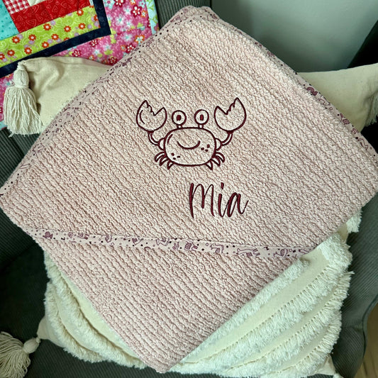 Bio Kapuzenhandtuch personalisiert mit Name und Tiermotiv