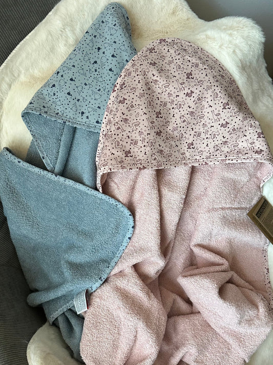 Kapuzen-Badetuch 2-farbig 80x80 cm aus hochwertigem Frottee