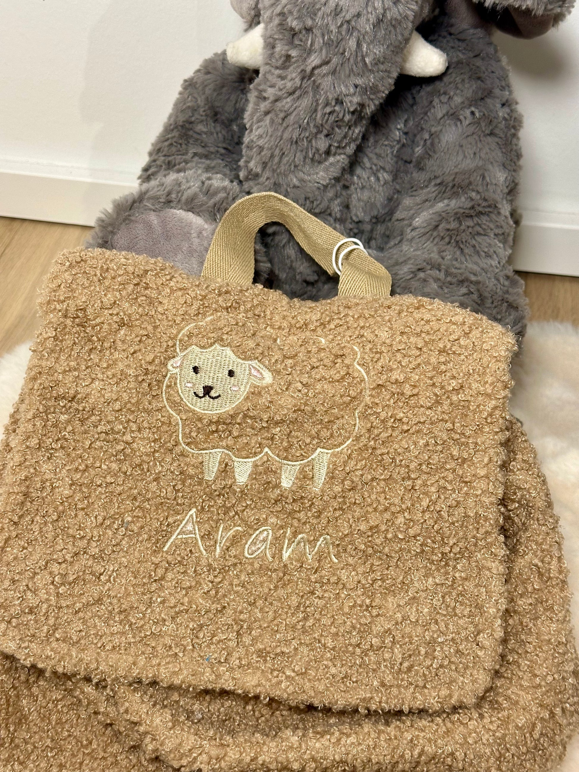 Rucksack Boucle bestickt mit Tiermotiv + Name
